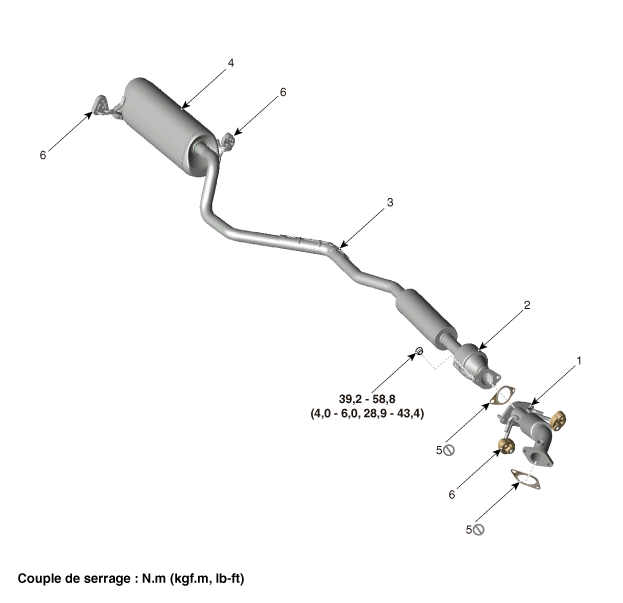 4. Silencieux principal 5. Joint d’étanchéité 6. Support |